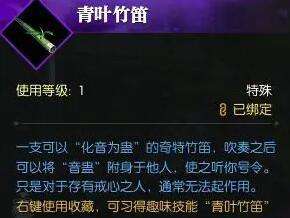 4、任务将提示使用特定职业技能(各职业不同)将其击晕,任务达成后可获得娱乐技能【青叶竹笛】。