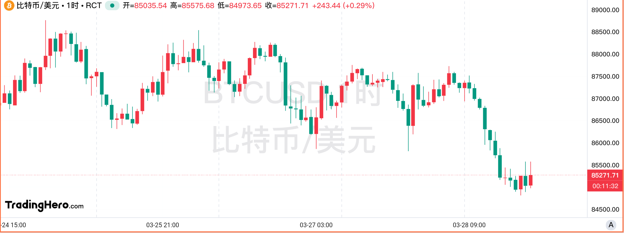 比特币周初走高至88000元/枚上方后开始震荡回落,截至发稿在85270美元/枚附近徘徊。