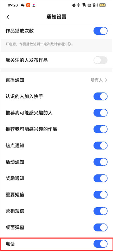 快手极速版电话通知怎么设置