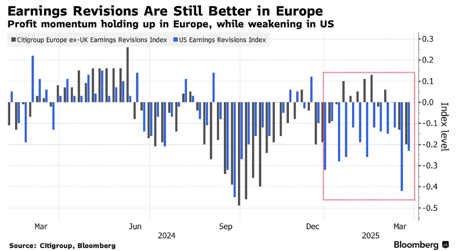 多年来,人们几乎没有理由将目光投向美国以外的地区,因为美国飙升的科技巨头和坚韧的经济实力推动了一个市场主导时代的到来。但由于特朗普的关税政策和政府裁员带来的不确定性,人们对美国的特殊贸易地位产生了怀疑,而欧洲正在成为受益者。