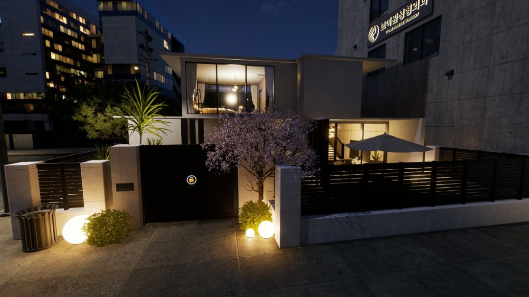 这一套极简风一人居地产,外表看起来就是一个带有院子的极简双层别墅。