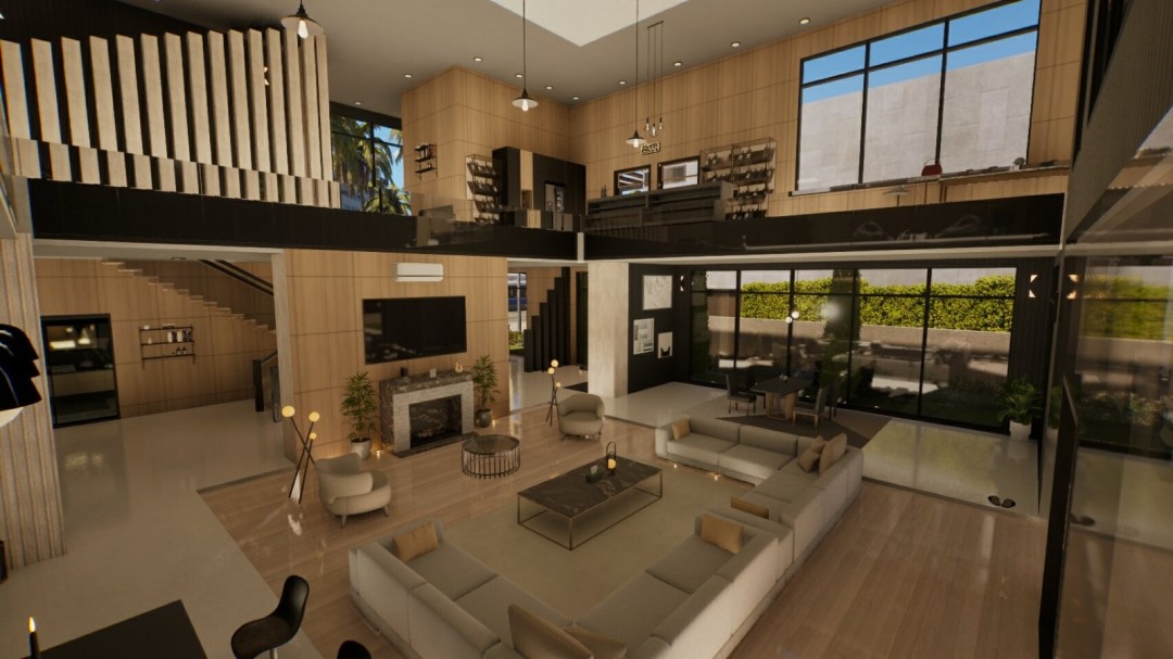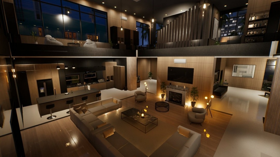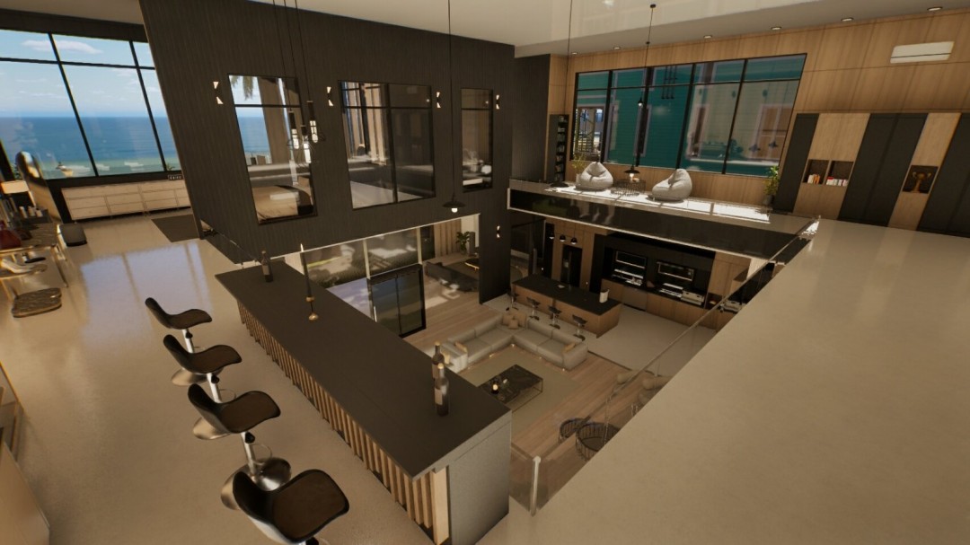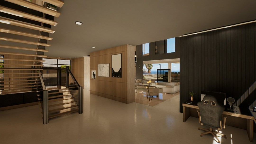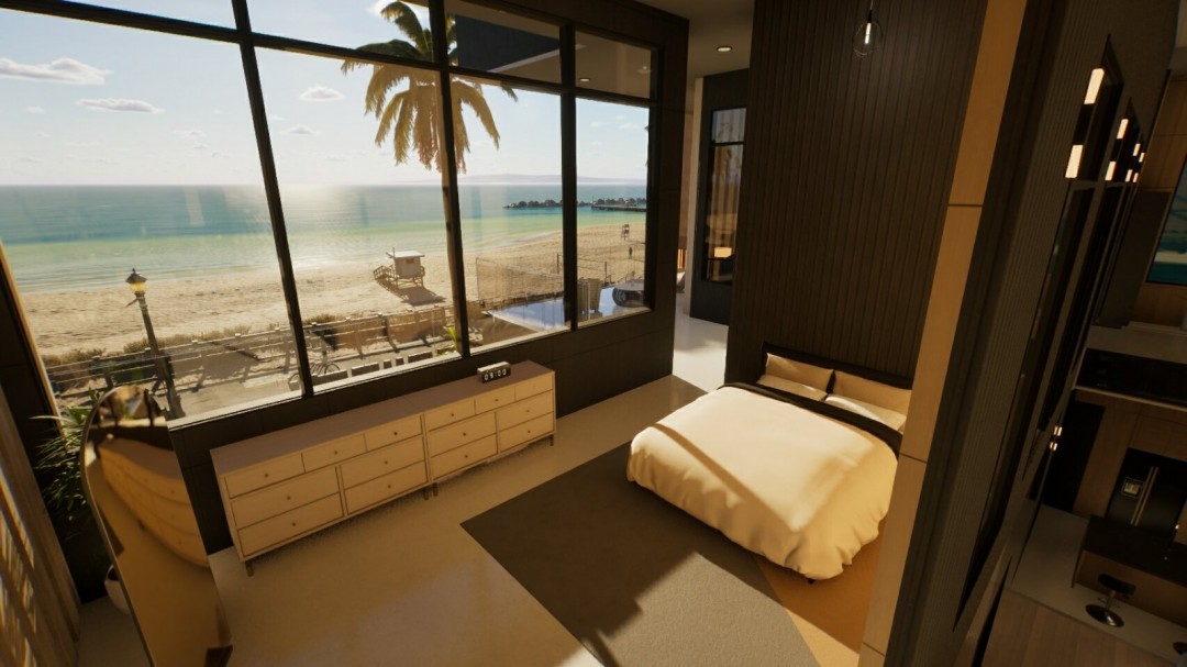 这一套现代海滩别墅地产,外表看起来就是有现代风格的海滩别墅,有一个二层,算是一个大一点的loft公寓。