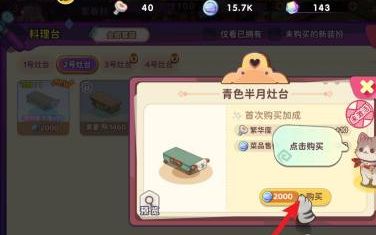 2、随后,在装修界面中,选取第二个料理台选项,并寻觅那青色调的半月形灶台。