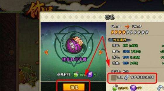 5、强化时选择使用保护符,可以提高强化成功率,点击强化即可。