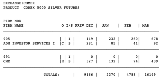 和黄金一样,12月和3月的白银“交割月份”也出现了异常高的“交割”量,而1月和2月的非交割月份同样也有相当的活跃度。正如下面所示,四个月的总交割量达到了32,473个合约。每份合约5,000盎司,总计162,365,000盎司,约5,050公吨白银。