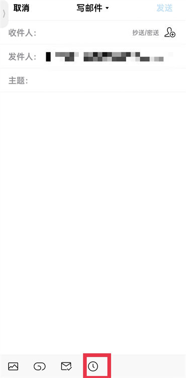 2.在写邮件的页面中点击下方的【时钟】的图标;