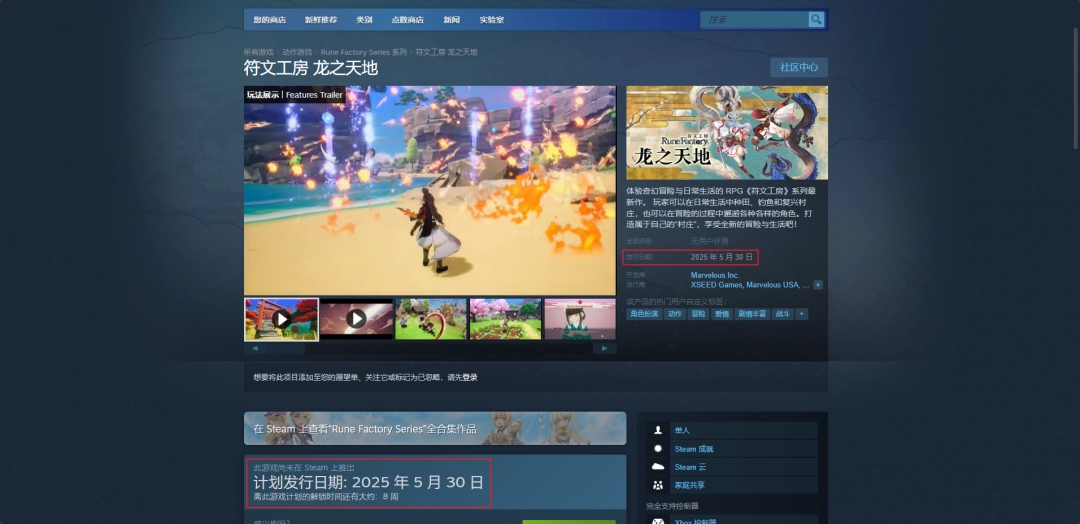符文工房龙之天地Steam版的上线时间为2025 年 5 月 30 日,预下载时间大概是前一天,也就是5月29日。