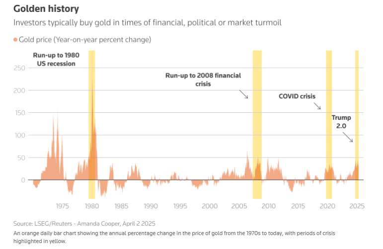 各国央行、投资组合经理以及散户投资者都纷纷买入黄金,以对冲新冠疫情危机以及随后全球能源危机引发的通胀飙升。而且,即使在通胀有所缓解的情况下,他们仍在继续购买。随着特朗普越来越孤立主义的政策逐步实施,许多人将黄金作为美元的一种流动性替代资产。