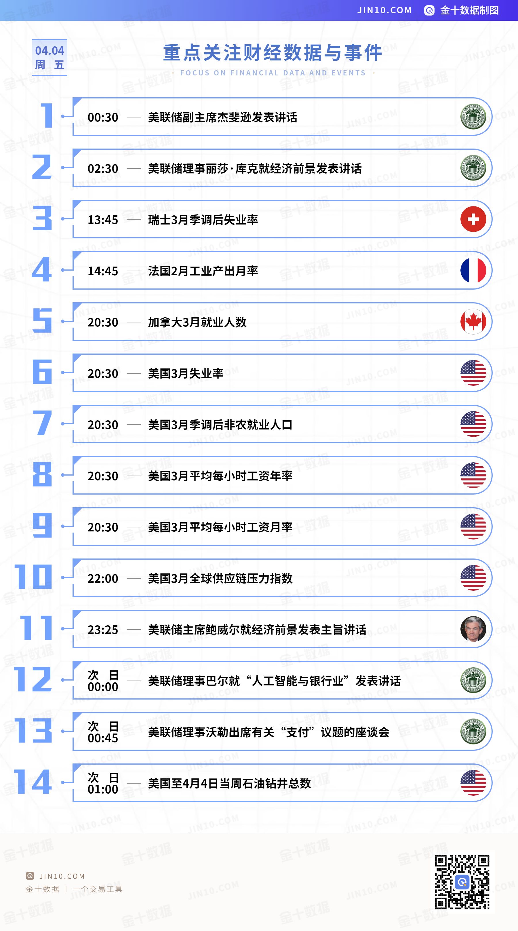 23:25,美联储主席鲍威尔就经济前景发表主旨讲话;