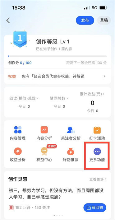 1.首先打开知乎软件,进入到知乎页面之后点击右下角的【我的】,来到我的页面后点击【更多功能】;