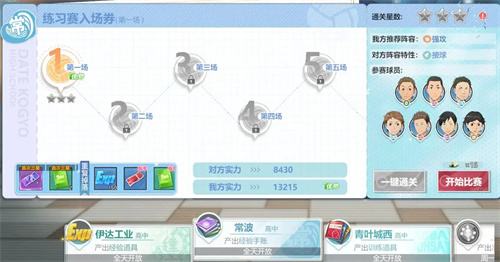 2.在练习赛中可以自由选择要挑战的对手,也根据对手的不同产出相应养成所使用的训练道具,其中部分关卡存在开放日程的设定,仅在特定的日期开放挑战。