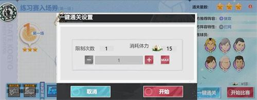 以三星通关后,下次再挑战这个关卡就可以选择一键通关,根据一键通关选择的次数,直接扣除相应体力获得训练材料,简称一键扫荡。