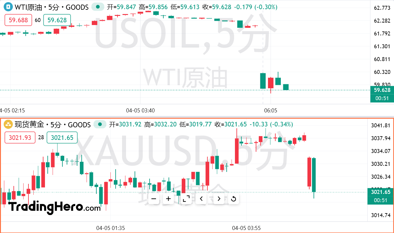 周一开盘,纳指期货跌幅在盘初一度跌超5.5%,标普500指数期货跌超4.7%,道指期货跌超4%;WTI原油跌幅达4%,跌破60美元/桶,为自2021年4月以来首次;现货黄金周一盘初跌17美元,跌幅为0.56%;现货白银跌超2%。虽然贵金属通常会从动荡时期获益,但在市场极度混乱时,贵金属也会被抛售,因为投资者会寻求弥补其他方面的损失。