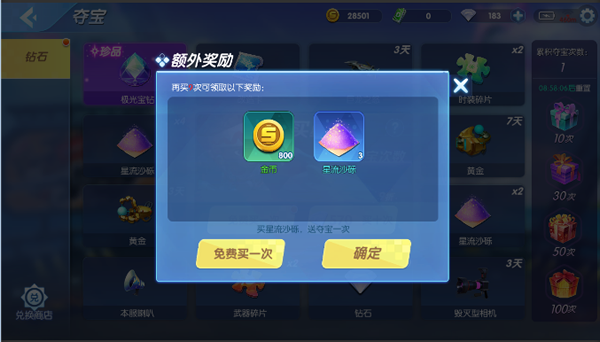 一周内夺宝达到一定次数,可以领取额外的夺宝奖励。