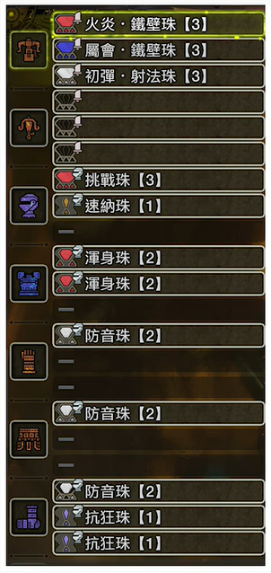 武器:火焰铁壁珠、属会铁壁珠、初弹射法珠