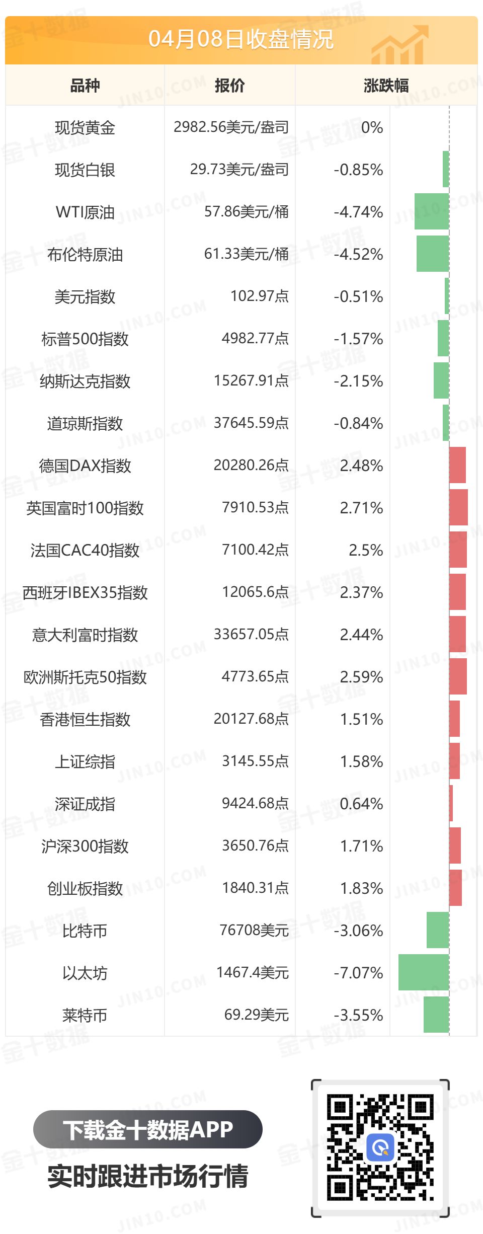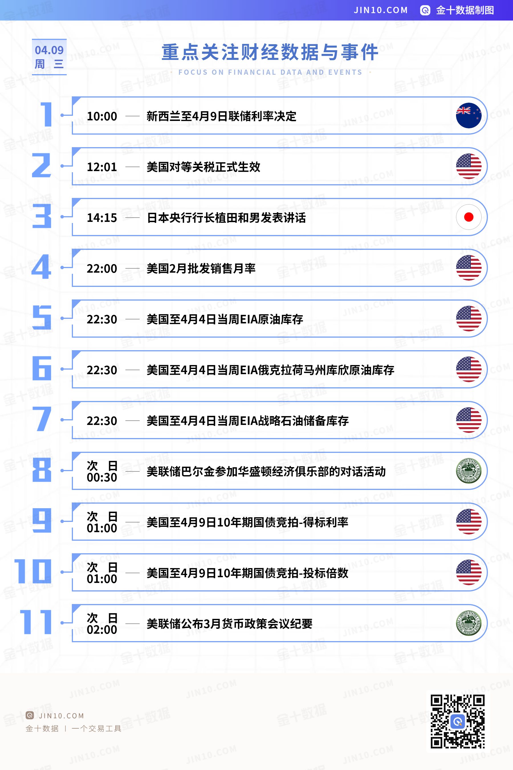 2、美国海关与边境保护局重申各国具体税率将于4月9日凌晨12:01(北京时间4月9日中午12:01)生效,加拿大对美征收的25%汽车关税亦生效。