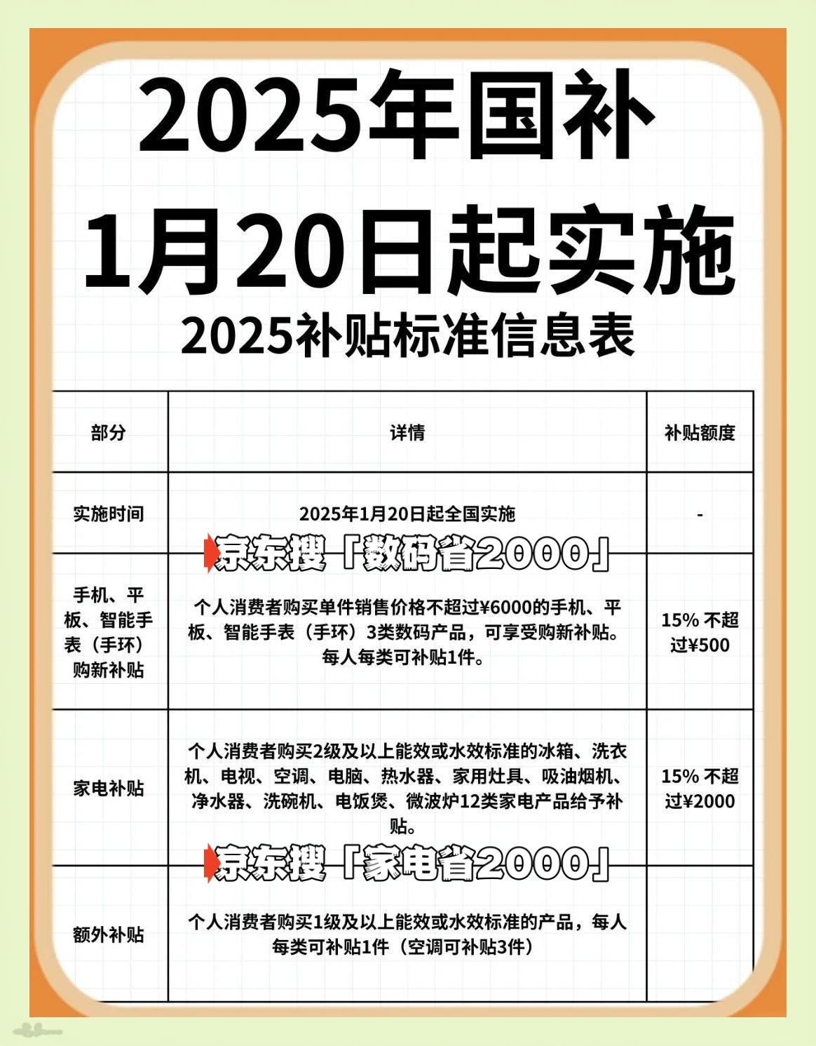 国家发改委、财政部最新文件明确,2025年家电、手机数码、汽车三大领域的国家补贴(简称“国补”)全国统一结束时间为2025年12月31日。但部分省份因补贴额度紧张可能提前截止,河南、湖南等地消费者需在12月中旬前完成购买。如何抓住最后9个月的红利期?这份“省钱攻略”请收好!