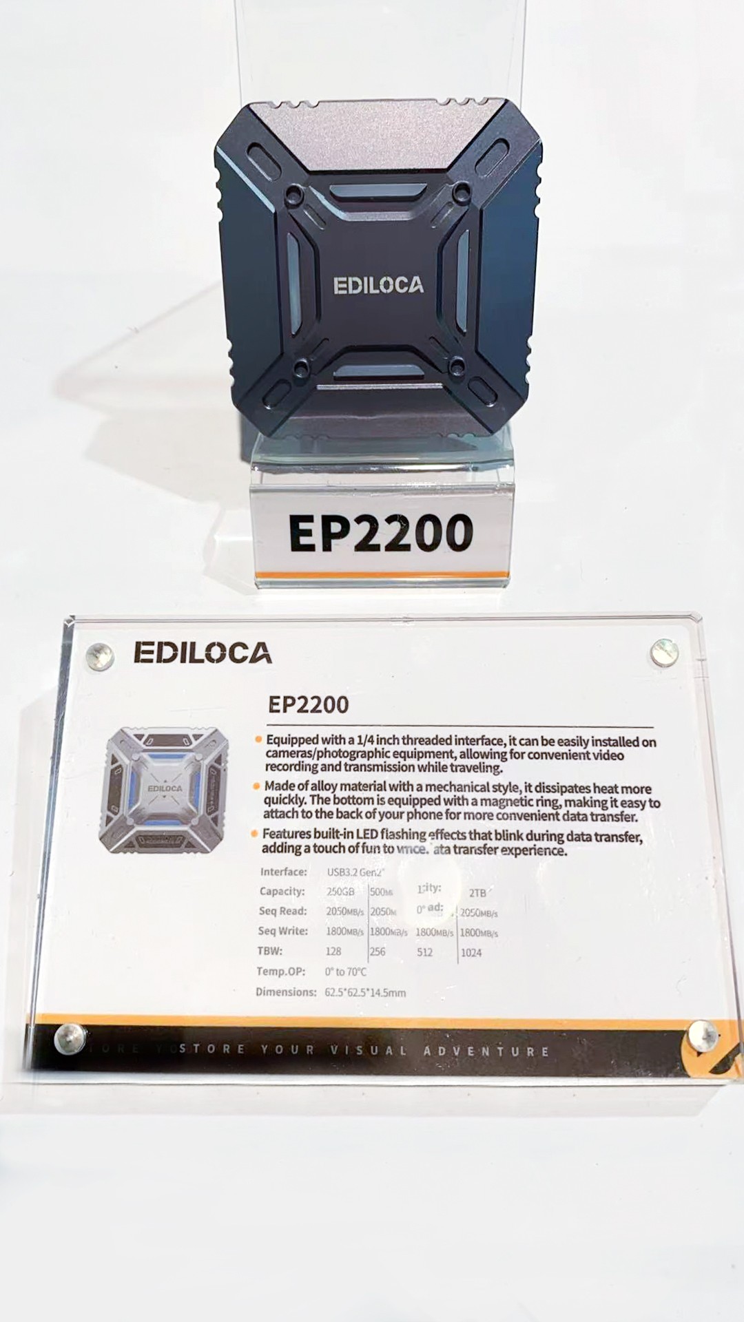 首次全球亮相的Ediloca磁吸式移动固态硬盘,以“一机多能”的创新理念颠覆传统移动存储认知。传输速度高达2050MB/s,3D NAND颗粒确保4K视频文件秒级转存。人性化磁吸设计使EP2200可稳定吸附于手机、相机、无人机等金属设备表面,配合1/4英寸螺纹接口实现相机、监视器等多设备物理衔接,让高强度拍摄的影像存储与流转更轻松。同时,EP2200还创新性地引入了PD-100W快充系统,支持边传输边充电,彻底终结创作场景的电量焦虑与容量焦虑。