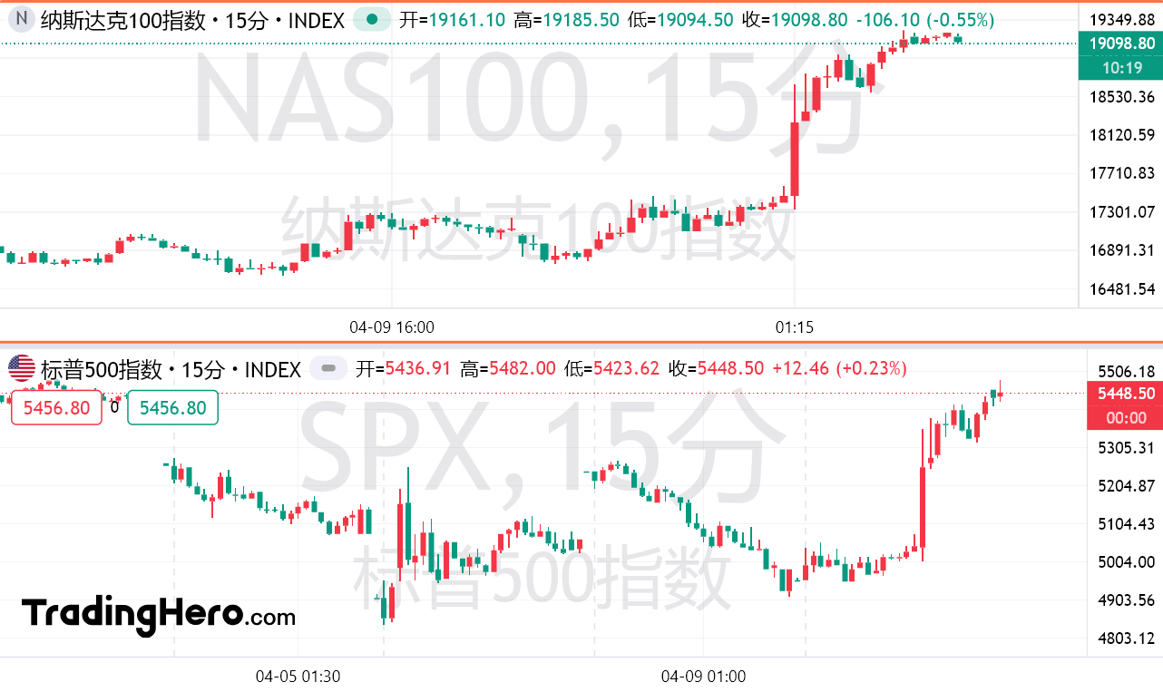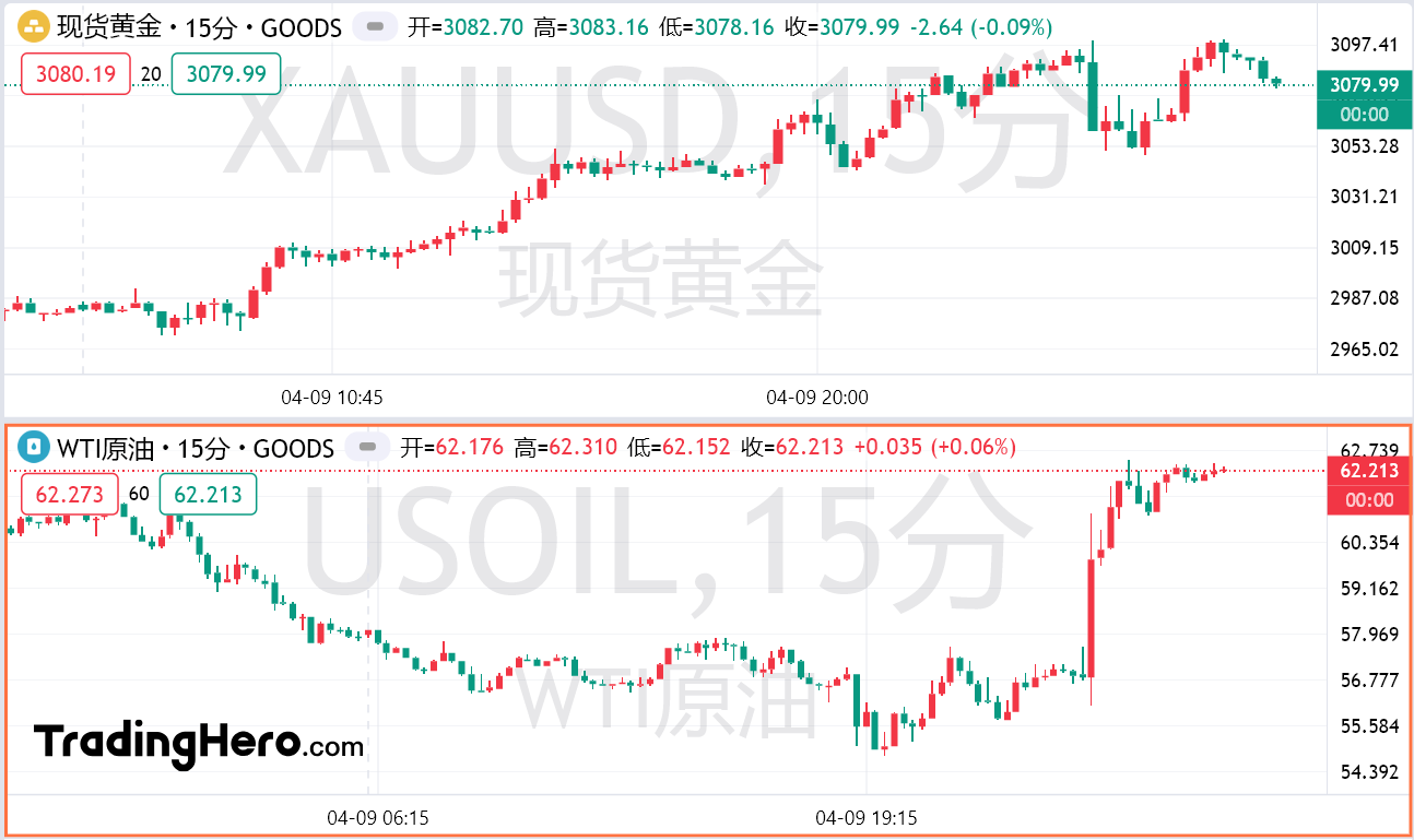 纳指暴涨12%、WTI原油暴涨8%、现货黄金创2020年来最大盘中涨幅!华尔街警告关税战远未结束