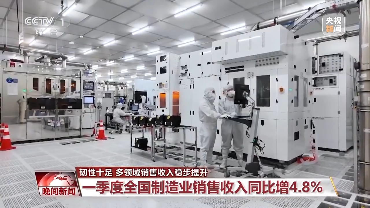 增值税发票数据显示,一季度,制造业销售收入同比增长4.8%,占全国销售比重达29.1%,较上年同期提高0.8个百分点,为经济持续增长提供重要支撑。其中,装备制造业销售收入同比增长9.7%,保持较快增长。