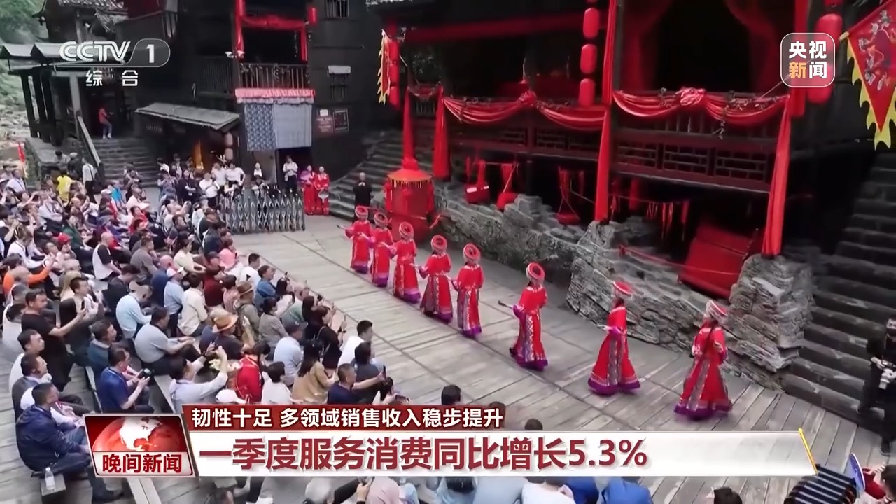 在春节假期消费带动下,一季度,服务消费同比增长5.3%。其中,游览景区管理、旅行社服务销售收入同比分别增长40.5%和15.5%;电影放映、文艺创作表演销售收入同比分别增长39.6%和15.2%,反映文化消费需求不断提高。