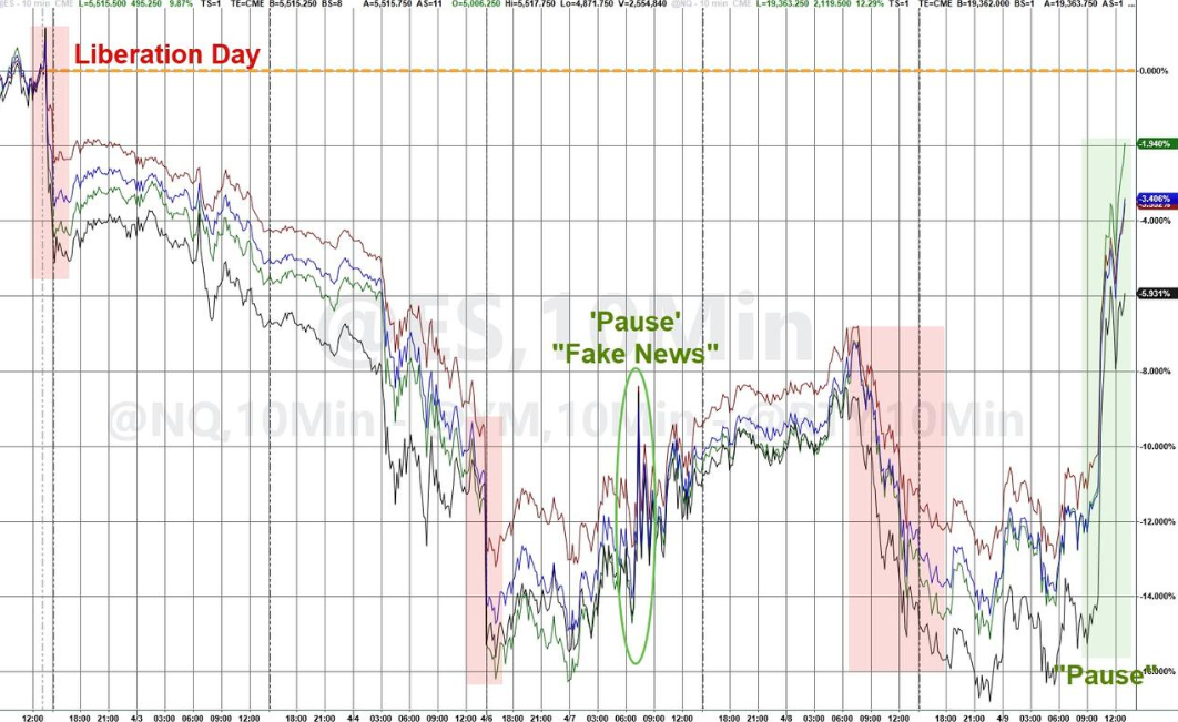 美国总统特朗普周三宣布暂缓针对大多数贸易伙伴的对等关税90天,以便与这些国家进行贸易谈判,这引发了市场反弹。他在社交媒体上的这一表态使人们对征税力度将低于预期感到乐观,并立即提振了自他上周推出其全面关税计划以来一直受到打击的市场。
