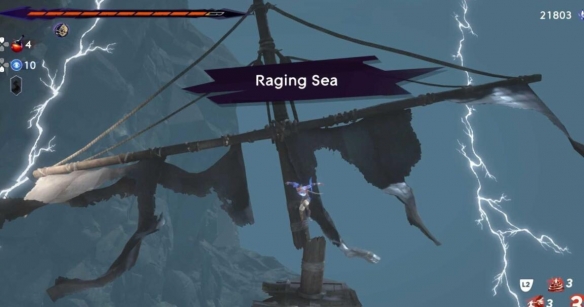 3.到达灯塔区域,前进到平台顶部可以购买该区域地图,然后从右边往下跳,直到最终落在船的桅杆上就会解锁海之幽灵成就然后,到达怒海区域。