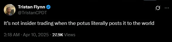 一条推文,狂赚2100%!特朗普“精准喊单”引爆内幕交易风暴