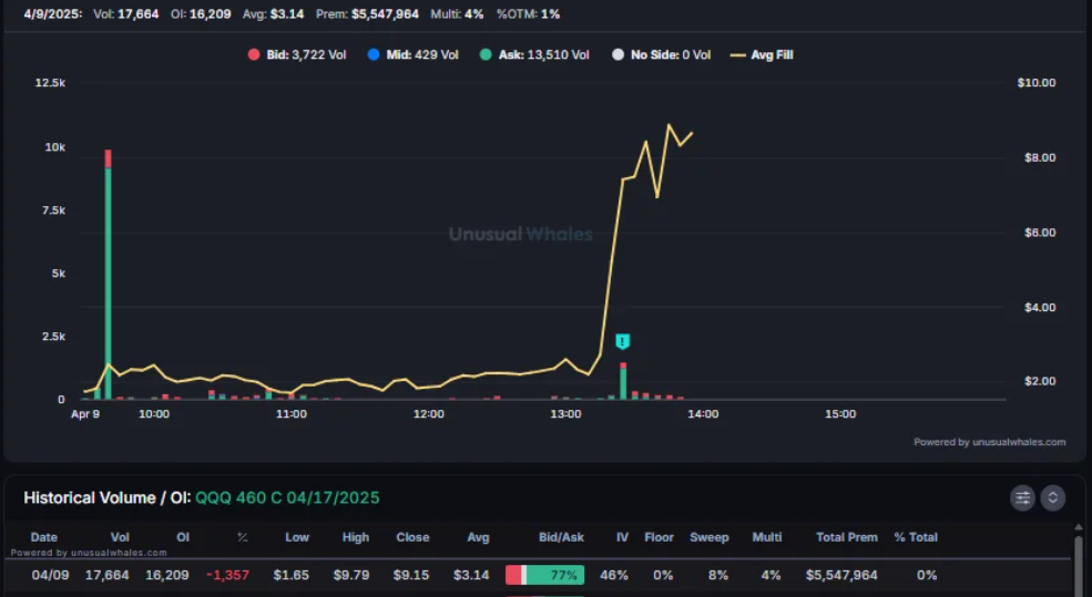 - $QQQ看涨期权:交易员投资了约245万美元,目前获利超过600%。