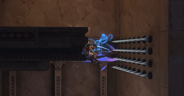 玩家可以从升降平台直接过去,毕竟这个是很近的,也能从上层羽毛图案的房间一路往右,这个也是可以的,具体选什么看玩家位置。