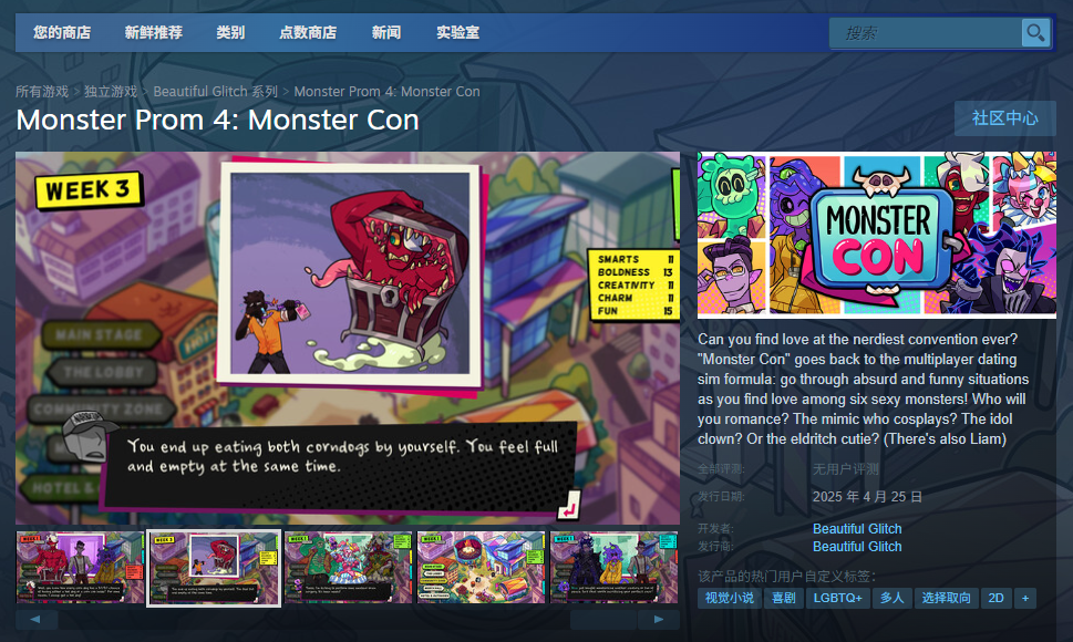 Steam平台购买链接:https://store.steampowered.com/app/2869860/Monster_Prom_4_Monster_Con/。