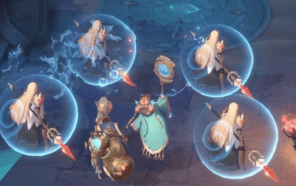 为自身和己方的战士/法师/控制提高攻击3回合,并消耗当前生命,转化为水盾,持续2回合。当水盾被打破时,该单位会对对位单体造成反弹伤害。