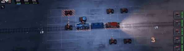 火车就是你的卡牌组,每节车厢都有独特的卡牌,当你升级火车时,新的卡牌就会加入到卡牌组中,随时可供使用。车厢也有具有协同增效作用的卡牌,当两节车厢都达到最高等级时,协同增效卡牌就会被激活。