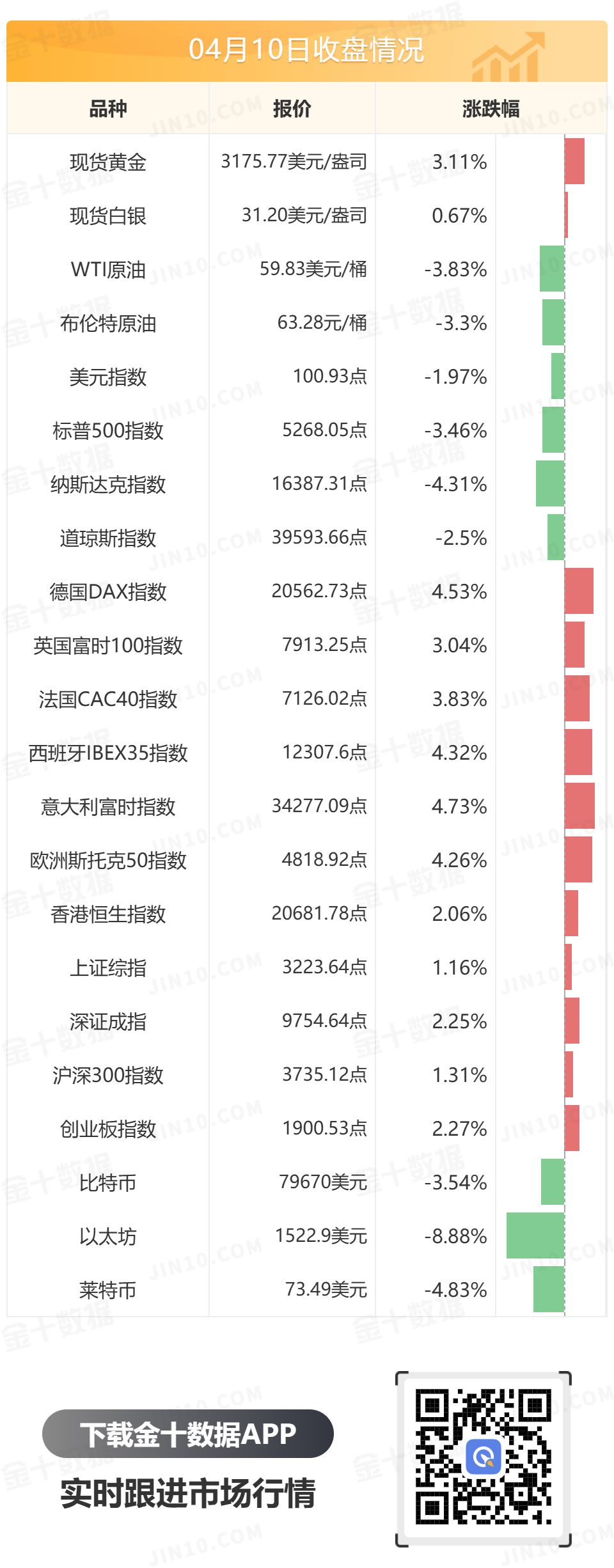 3、美国3月未季调CPI年率为2.4%,创半年低位,低于2.6%的市场预期。市场几乎完全定价美联储6月降息。特朗普称通胀已下降。
