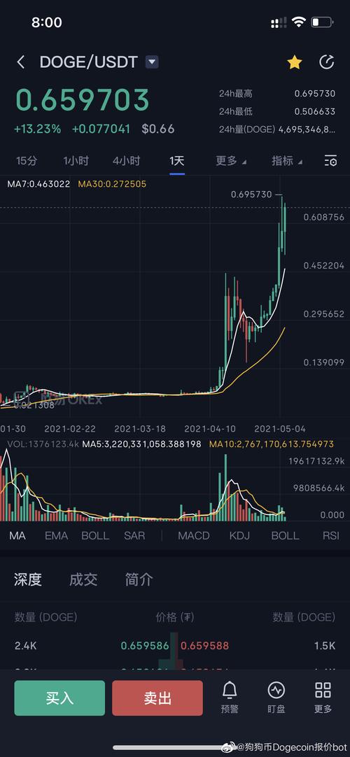 狗狗币的历史最低价出现在2020年12月,当时的价格约为0.002美元,这一价格点距离狗狗币的最高价(2021年5月达到的历史最高价0.7美元)相差甚远,显示出狗狗币价格的剧烈波动。