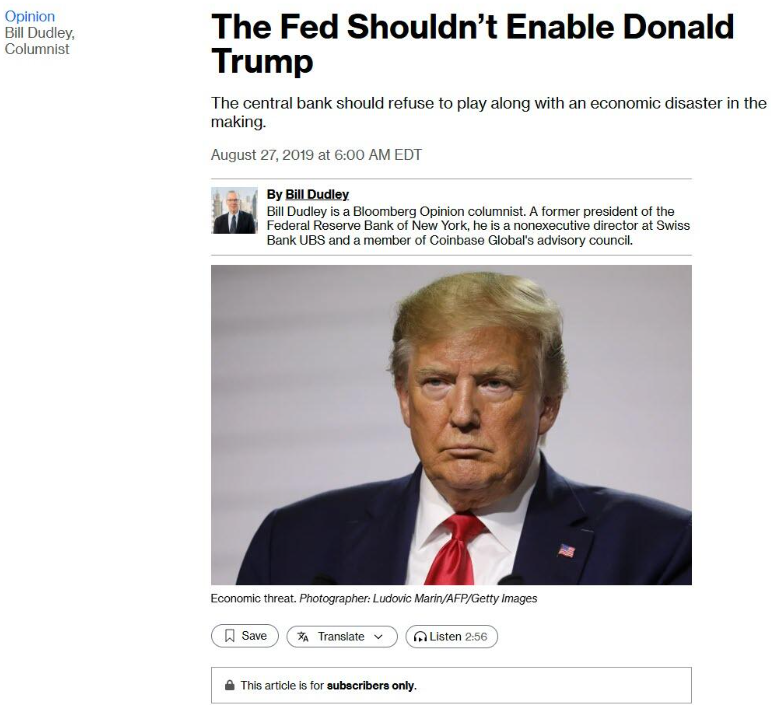 那么,为什么美联储现在不降息呢?零对冲说:“这也很简单:美联储,已经变得极具政治性——记得前纽约联储主席比尔-杜德利(Bill Dudley)在特朗普第一场贸易战高峰期撰写过一篇专栏文章,他在文章中敦促他的前美联储同事不要刺激经济,要让经济崩溃,以摧毁特朗普。但是,无条件地向特朗普拒绝宽松政策就太明显了(尤其是基于密歇根大学通胀预期这样站不住脚的东西,而美联储主席鲍威尔在上一次FOMC会议上也是这样说的,完全可以忽略不计),尤其是如果市场出现混乱,人们开始质疑美联储为什么在事情开始破裂时拒绝采取行动(比如基差交易)。