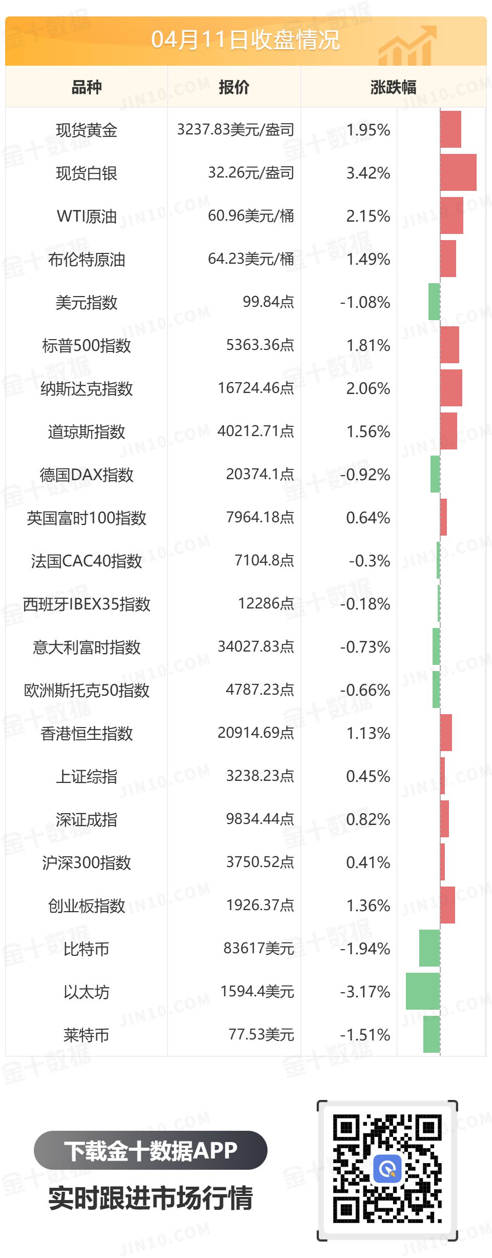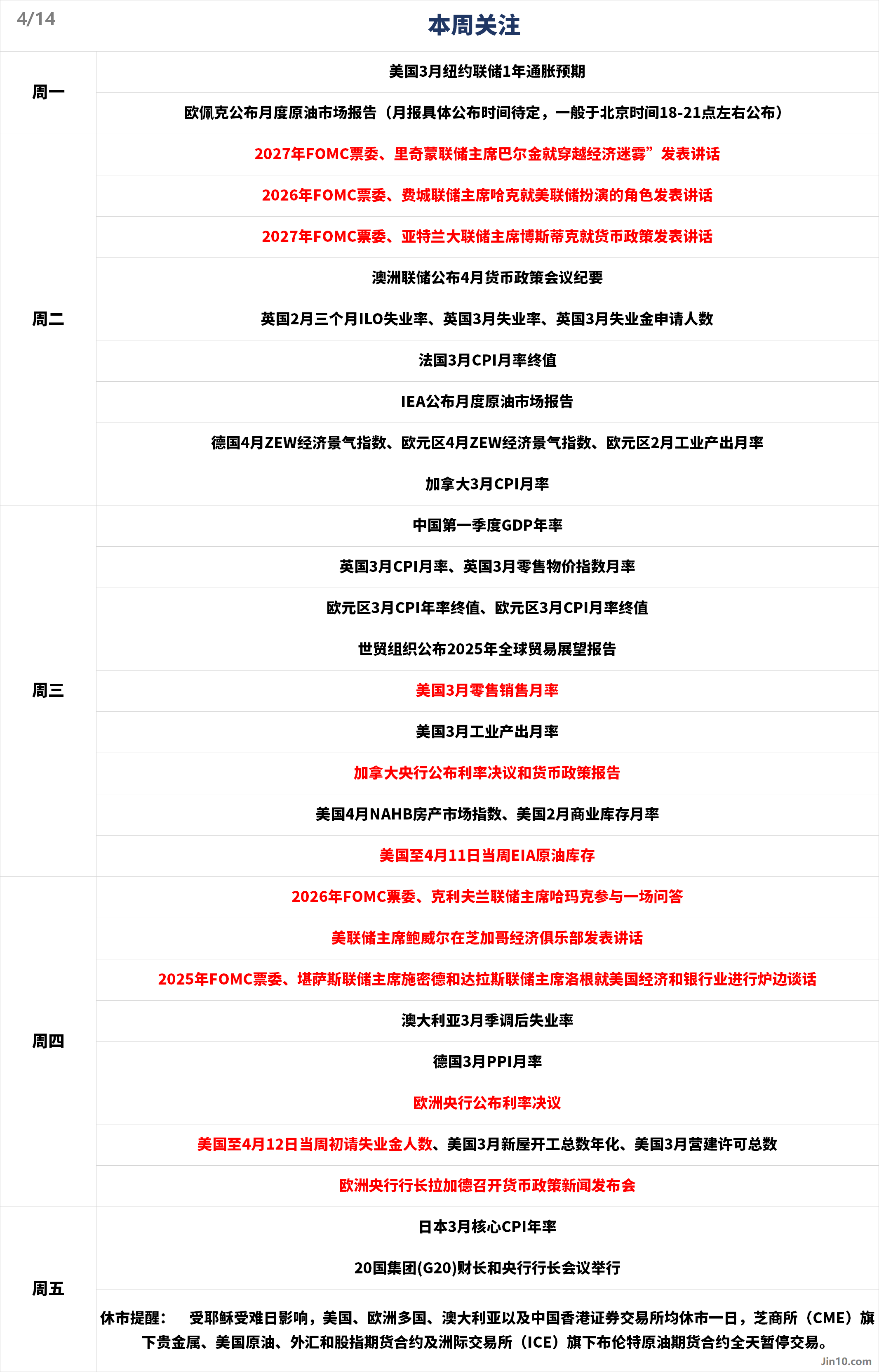 2、特朗普:将于周一提供半导体关税的更多信息。上周五并没有宣布任何“关税豁免”,它们只是被归入了不同的关税“类别”。正在关注半导体和整个电子供应;美元贬值并不重要,美元将会上涨,并且会比以往更强劲;许多人认为债券市场促使我做出暂停关税的决定,但事实并非如此。