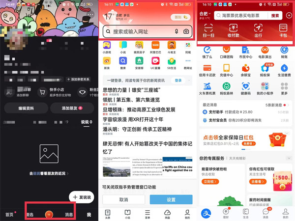 快手、支付宝、UC浏览器等
