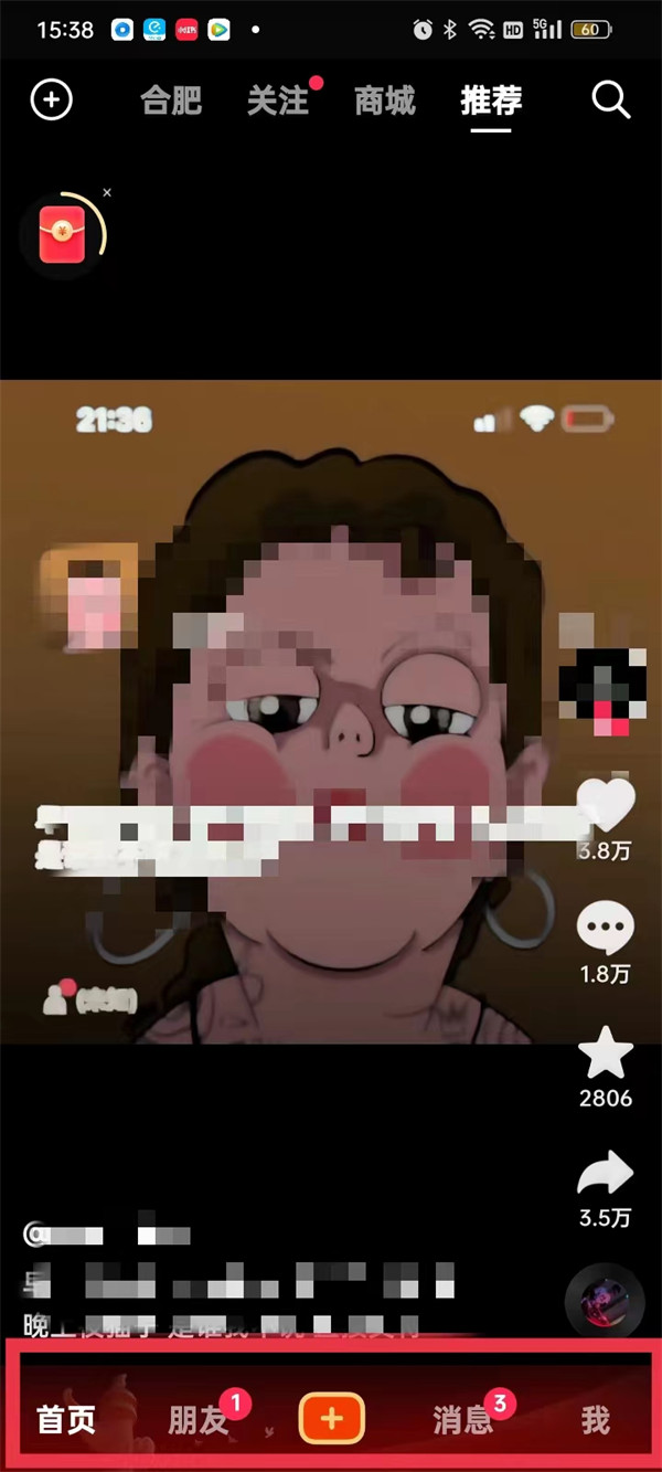 由于国庆的到来,同时也是为了喜迎第二十次全国代表大会的召开,抖音系统更新了新的版本,自动更新的新皮肤,所有用户的底部导航栏变成了红色背景,同时 号按钮也做了鲜艳的红色标识。