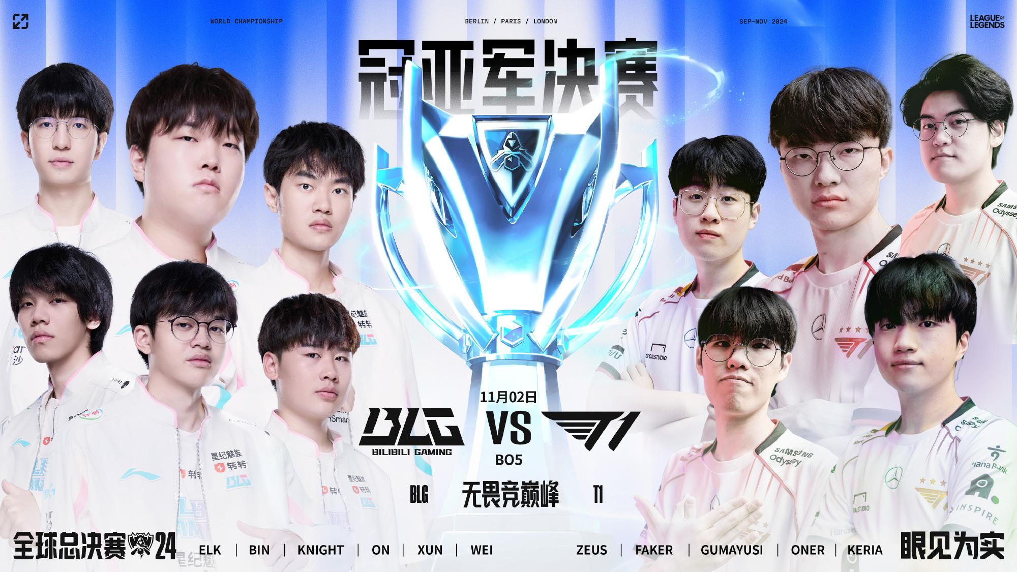 今晚的《英雄联盟》2024全球总决赛冠亚军决赛,一起见证BLG和T1的激烈对战。