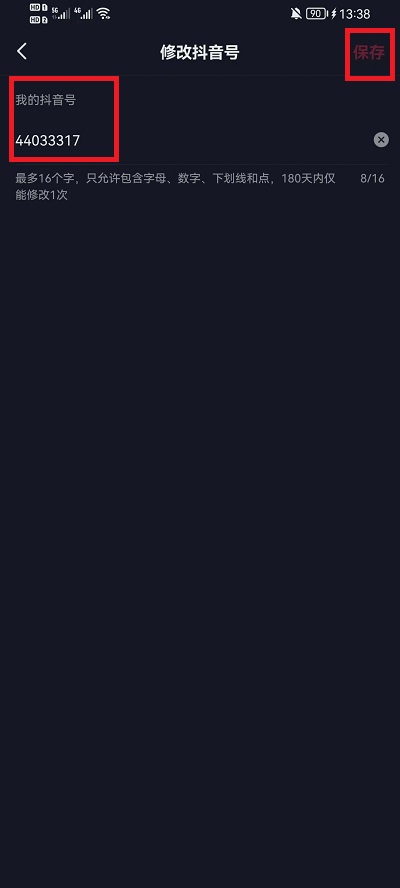 3、在抖音号界面重新输入自己想要的抖音号就可以完成其中的更改,180天仅能更改一次。