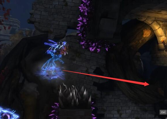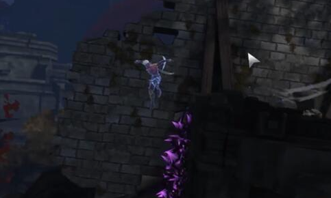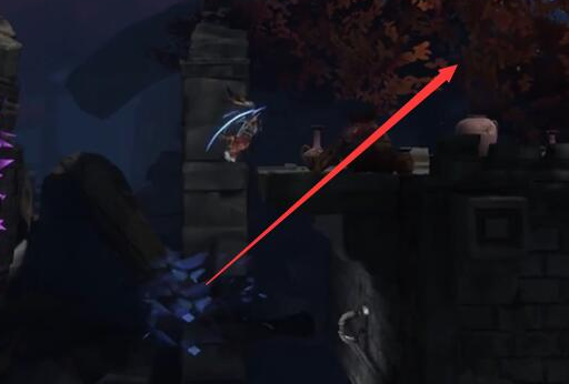 第三步:用钩子抓住黑洞跳到里边,紧接着抓住右边墙壁的钩锁跳上去,便可找到隐秘村落经卷。
