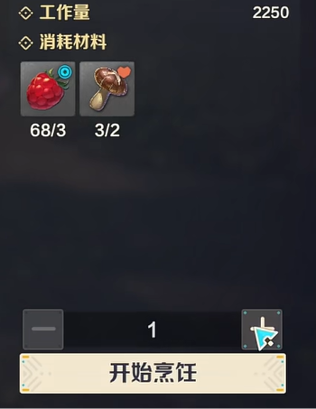 然后大家打算制作的话,还需要额外准备草莓以及蘑菇。制作一个的话,需要花费三个草莓以及两个蘑菇。然后开始烹饪之后,静静等待就可以获取了。如果想要获得更多果酱的话,可以一次性输入更多数额,就能一次性打造。