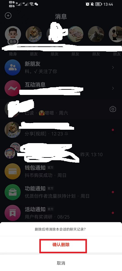 抖音群聊消息怎么一次删除