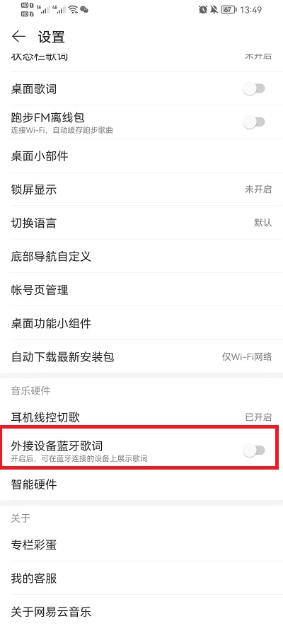 网易云音乐怎么设置外接设备蓝牙歌词显示
