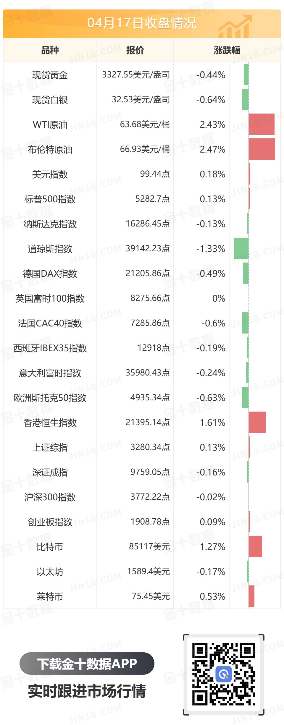 或因部分投资者于长假期前锁定利润,现货黄金有所回调,盘中一度跌穿3300美元关口,但随后迅速收复部分失地,最终收跌0.44%,报3327.55美元/盎司。现货白银收跌0.64%,报32.53美元/盎司。