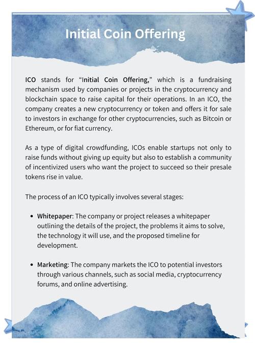 1、定义和功能:ICOCOIN是某个项目方为筹集资金并推广其产品或技术而发行的一种数字资产,投资者通过购买这种代币参与项目方的众筹活动,期待未来获得回报,这些代币可能在项目方的生态系统内具有一定的功能,如购买服务、投票决定等。