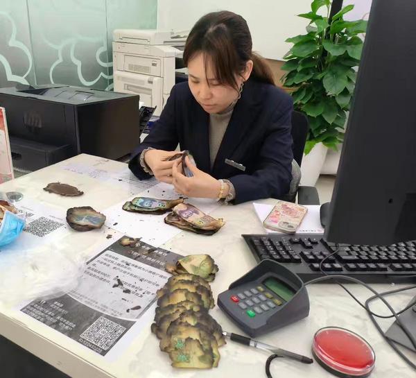 “请问这些烧坏的钱还能换吗?”日前,两位神色焦急的客户手捧一叠烧焦的纸币,走进中国工商银行武汉古田支行寻求帮助。运营主管询问得知,客户因出现意外,钱包衣物均被焚毁,家人也因烧伤正在医院救治,抱着一丝希望前来咨询残损币兑换业务。