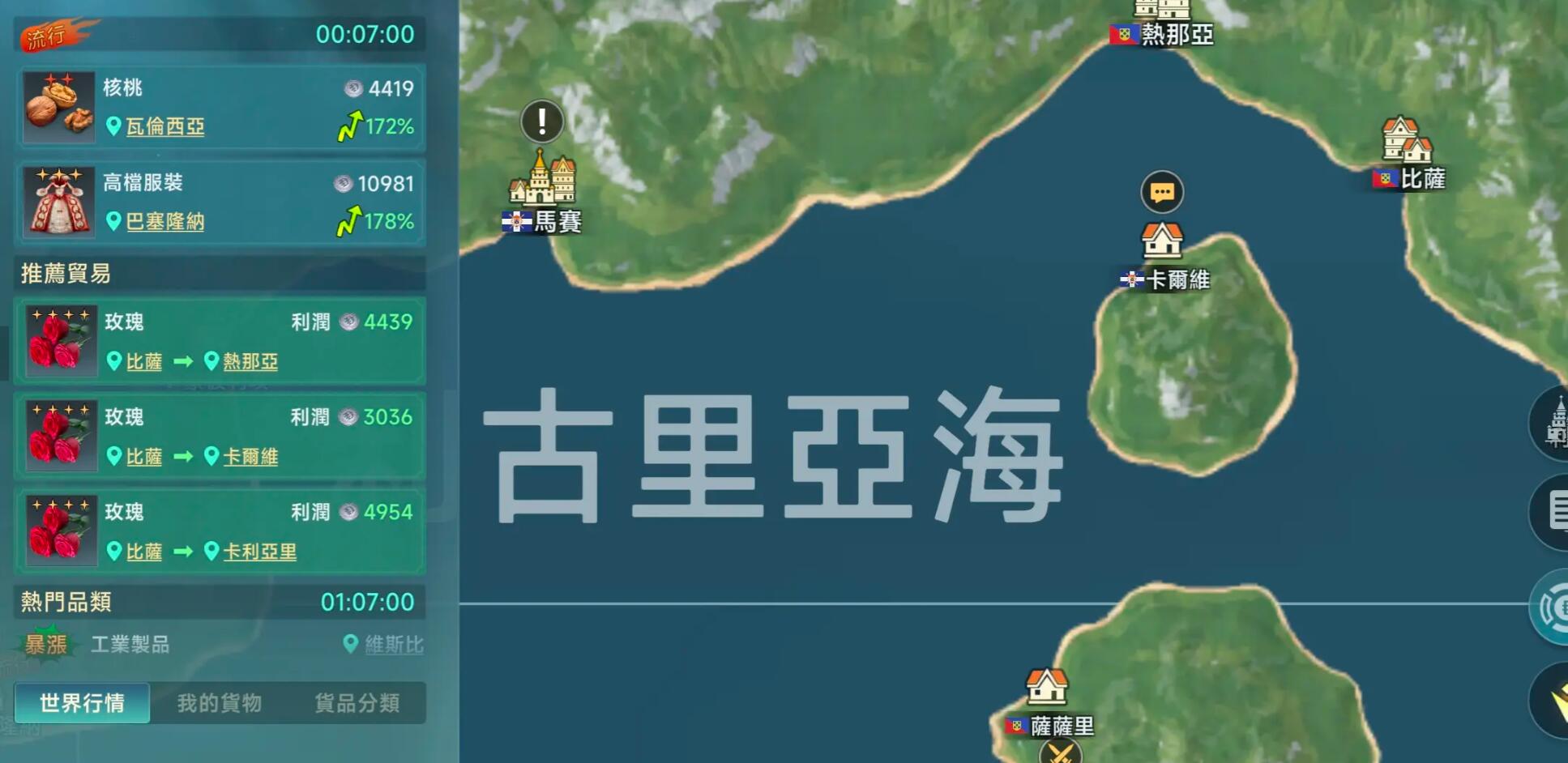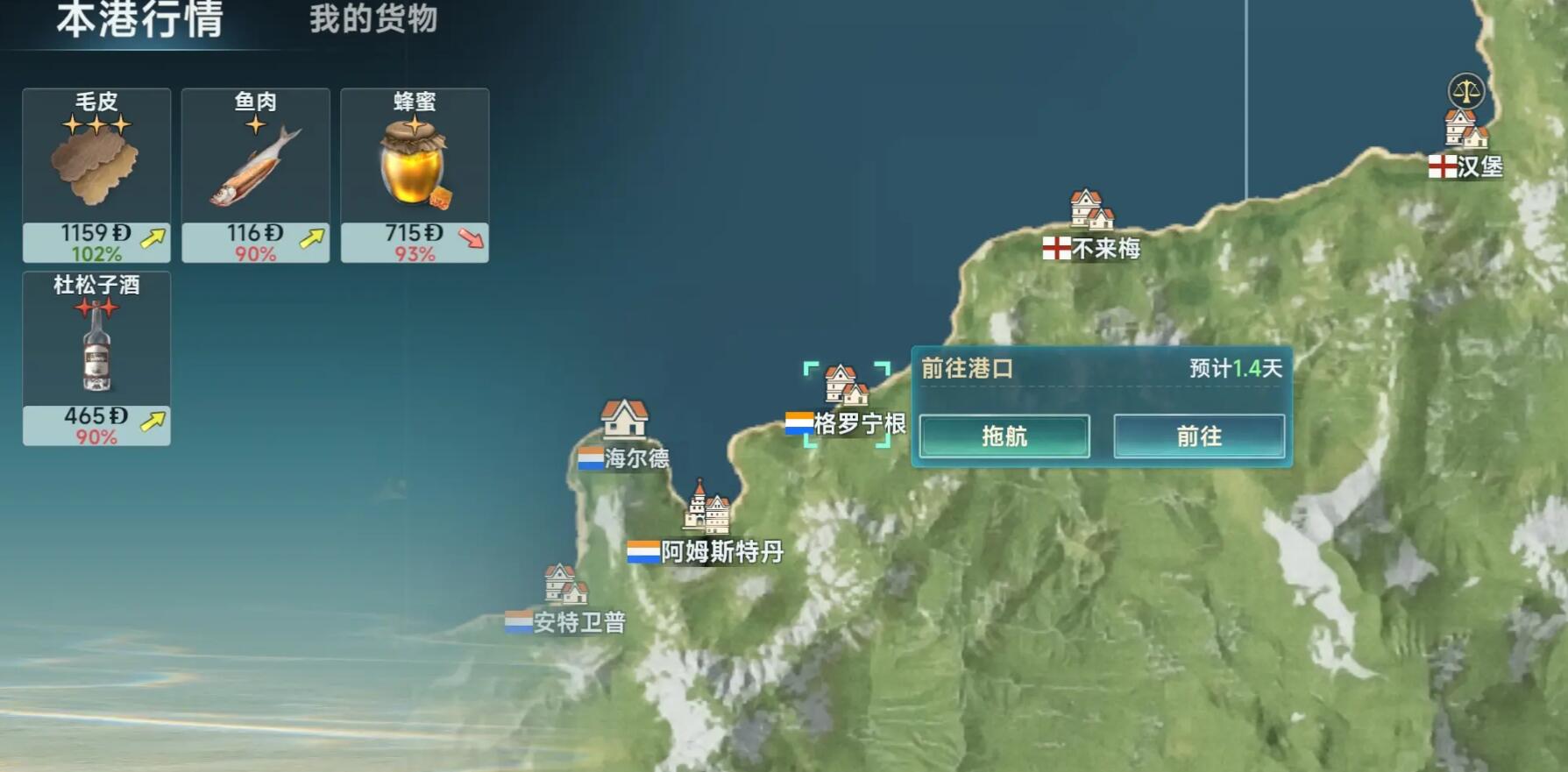 首先获取方面最重要的就是贸易,也是获取量最大的方法,玩家可观察各港口物价波动,低买高卖赚取差价。建议优先解锁高价值货物(如香料、丝绸),并组建5艘船的舰队以最大化单次贸易利润。某些港口会定期刷新暴利商品,抓住时机使用“快速航行”功能可大幅提高效率,同时避免由于价格波动导致的亏本。而且在港口周边采集矿石(如铜、铁)或珍稀植物(如香料原料),加工后出售可赚取差价。升级采集技能能提高效率。