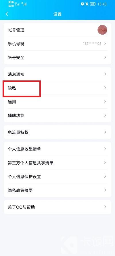 3、进入到设置界面之后,点击其中的【隐私】;